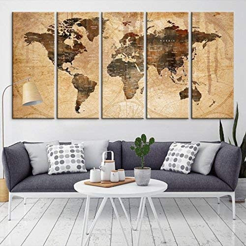 Amazon.com: Sephia World Map Wall Art, World Map Canvas, World Map